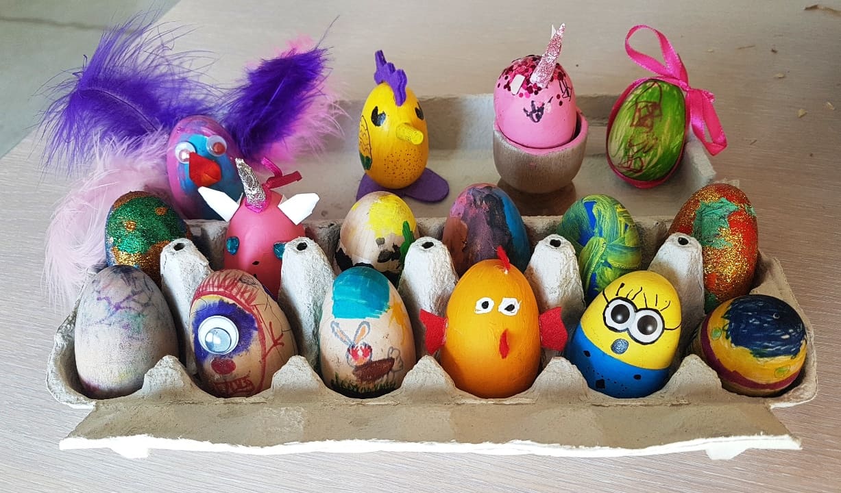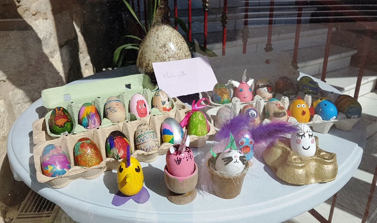 Après avoir reçu chacun d’entre eux un œuf en bois à décorer, les enfants du village ont apporté à la mairie, les 1 er et 3 avril dernier, leur création.