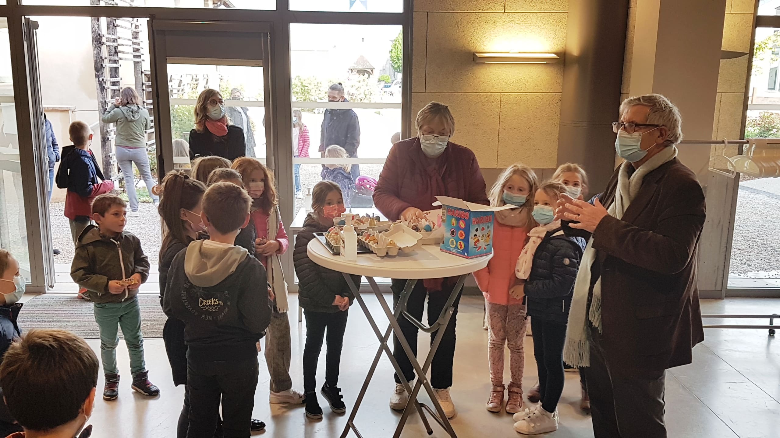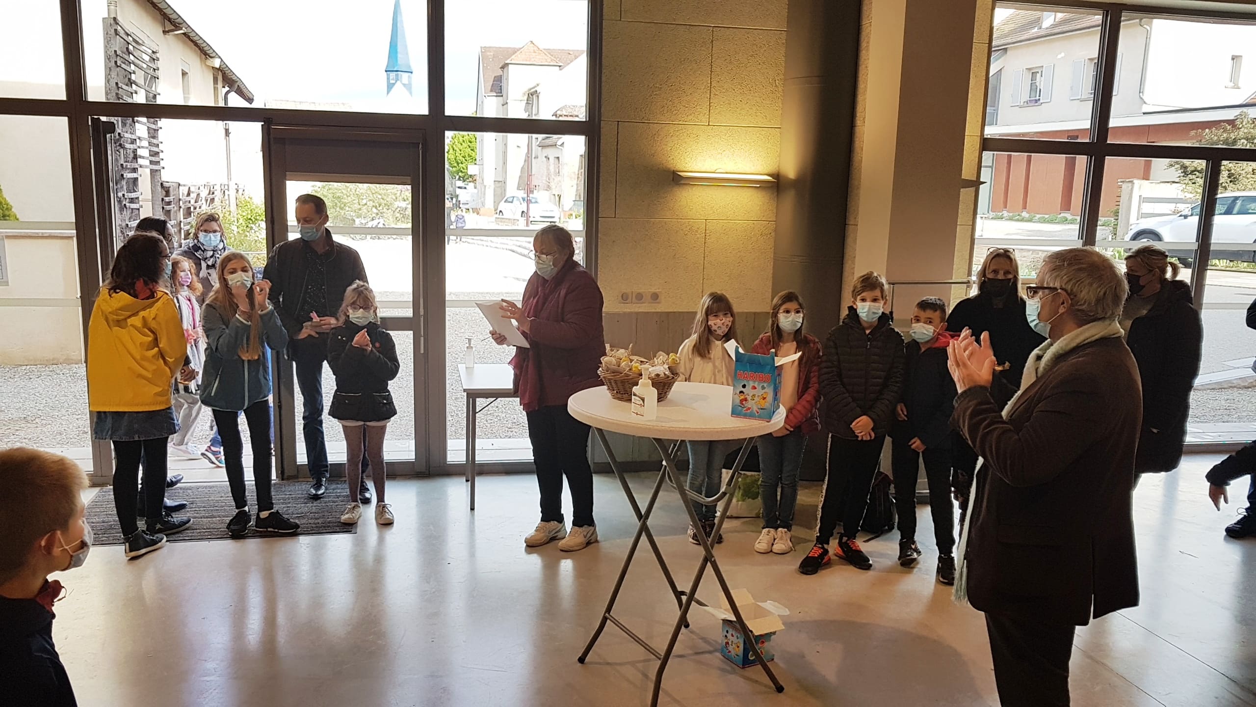 A cette occasion et n’ayant pas pu organiser la traditionnelle chasse aux œufs dans le village, en raison des mesures sanitaires de protection contre la Covid-19, la municipalité leur a remis un ballotin de chocolat.