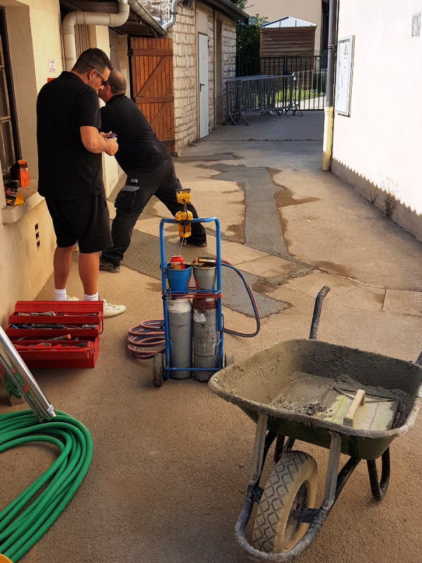 En prévision de la démolition du local jouxtant les écoles et de la construction du centre d’accueil pour mineurs, les vacances scolaires ont permis le déplacement de la vanne d’arrêt du gaz et une reconnexion de la conduite vers la maternelle.