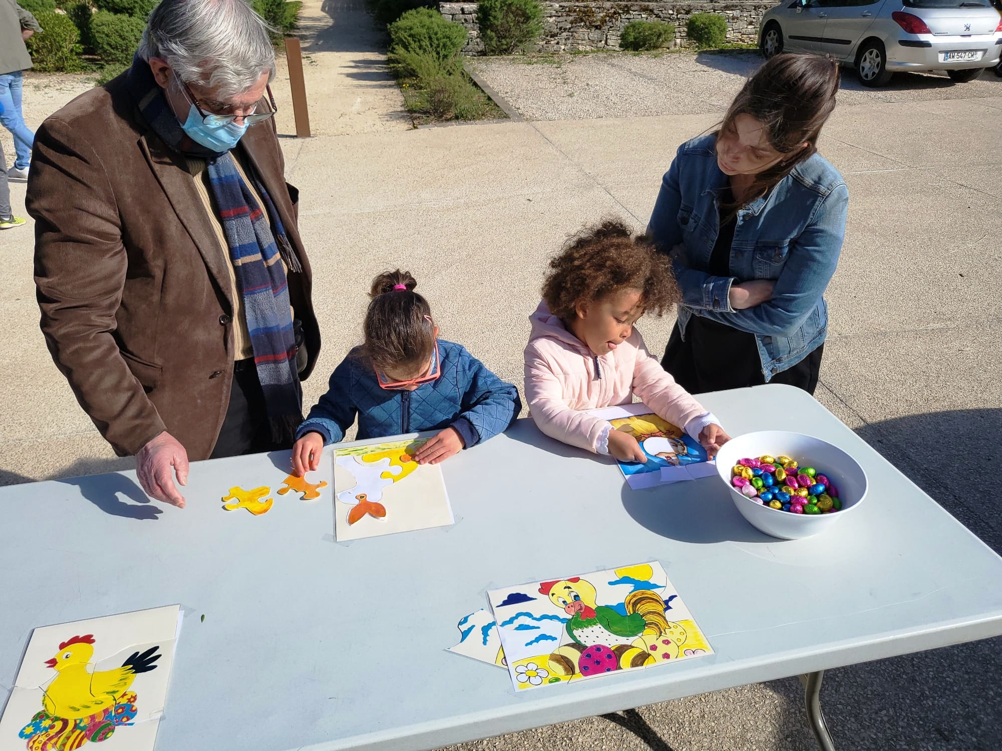 Le but était de retrouver des pièces de puzzles, sur le thème de Pâques, cachés autour de la mairie et de les reconstituer.