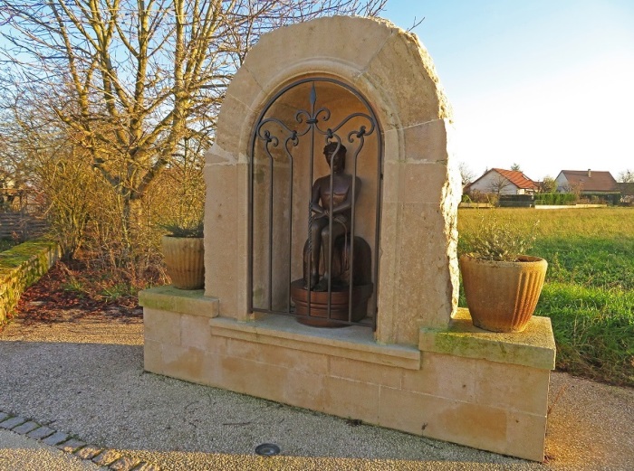 En prenant la direction d’Ahuy, on croise l’oratoire du Dieu de Pitié récemment restauré et doté d’une statue contemporaine en bois.