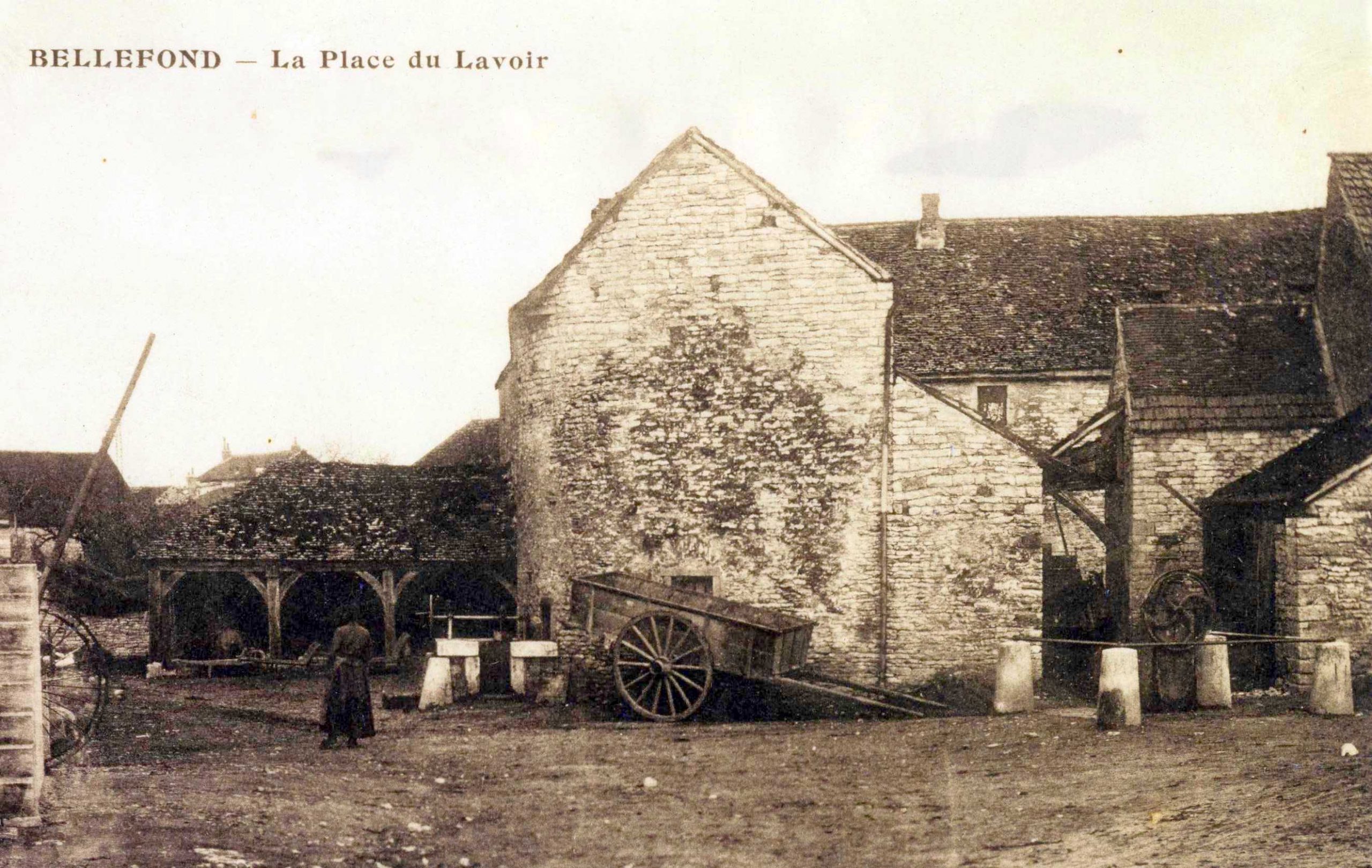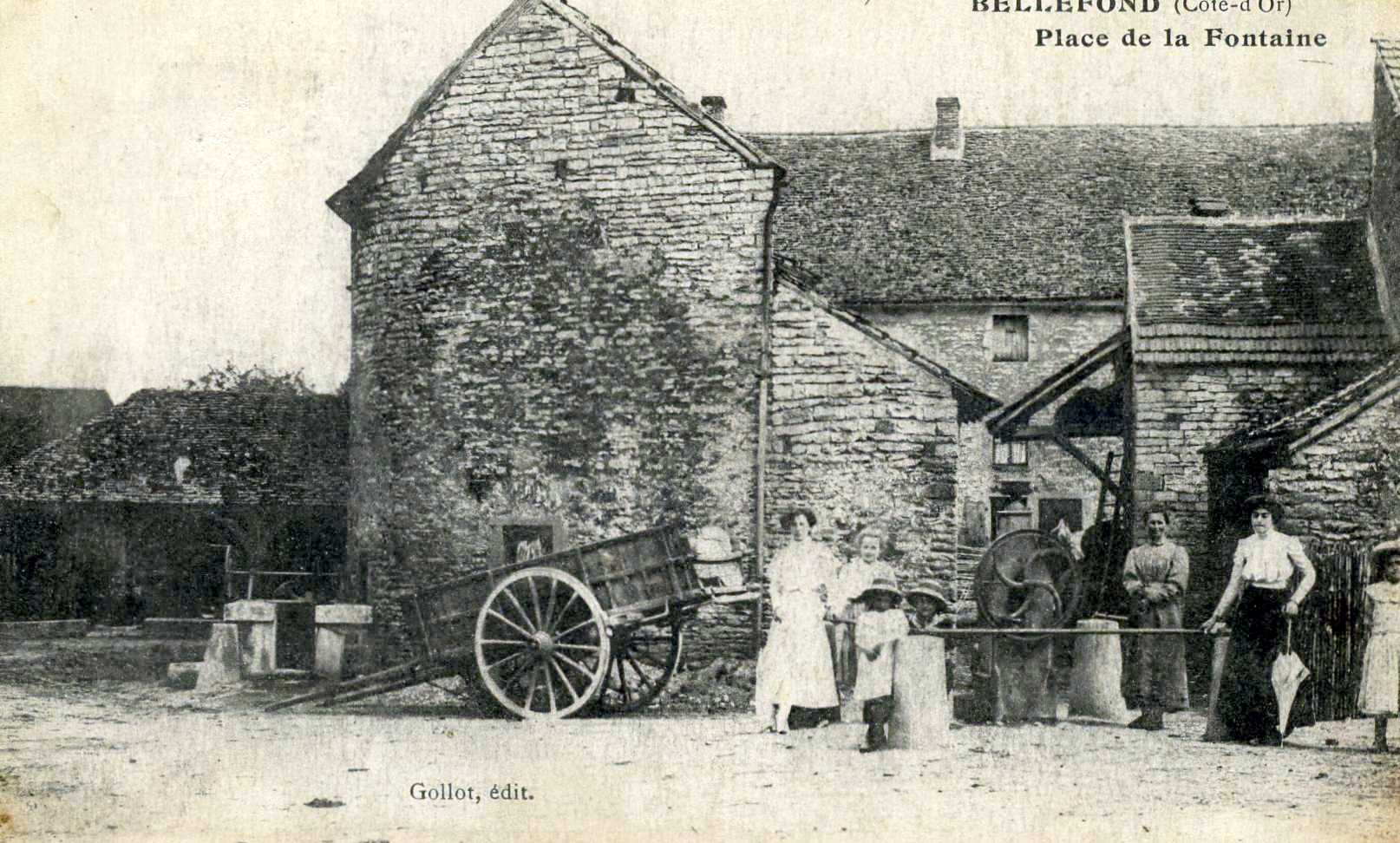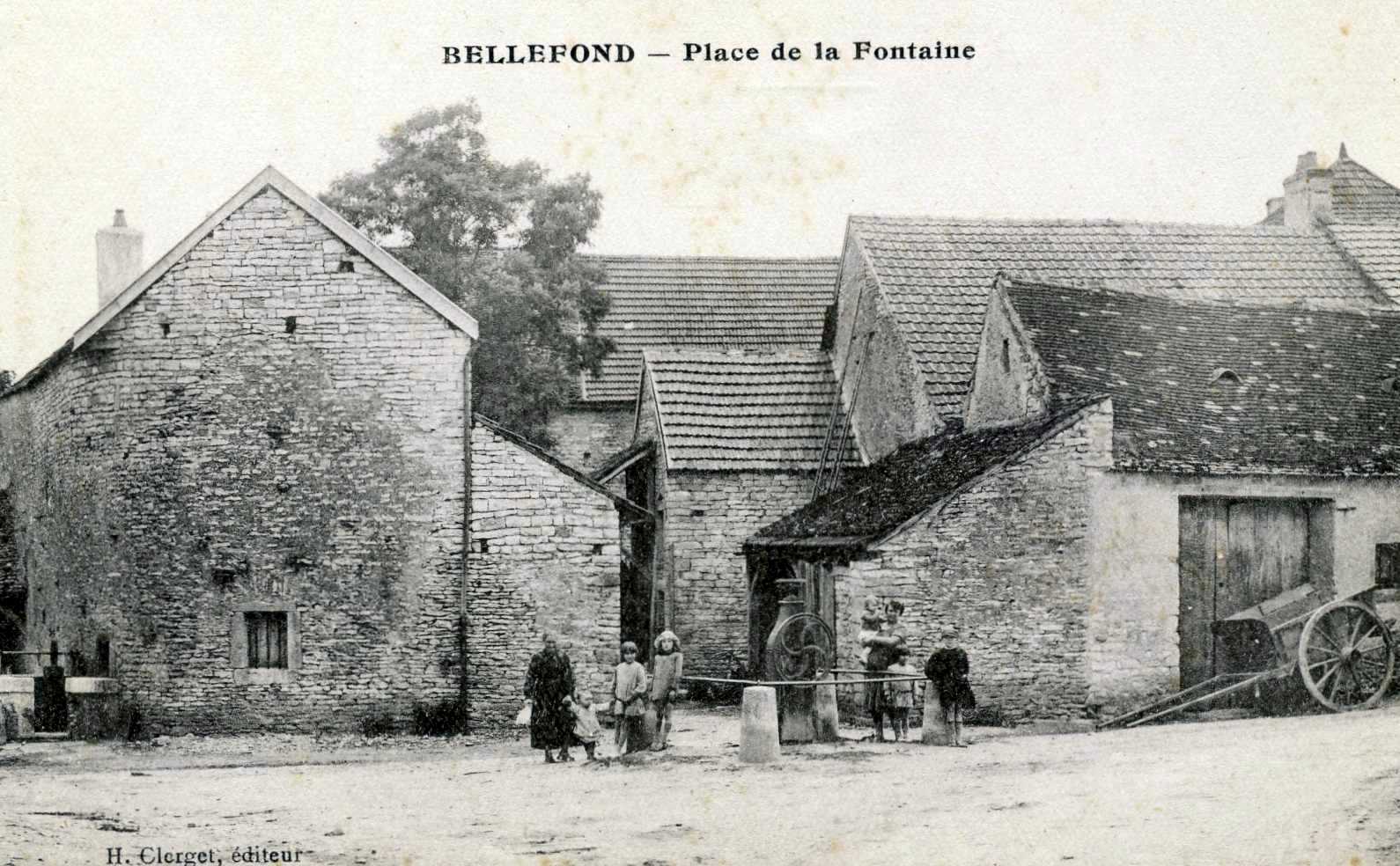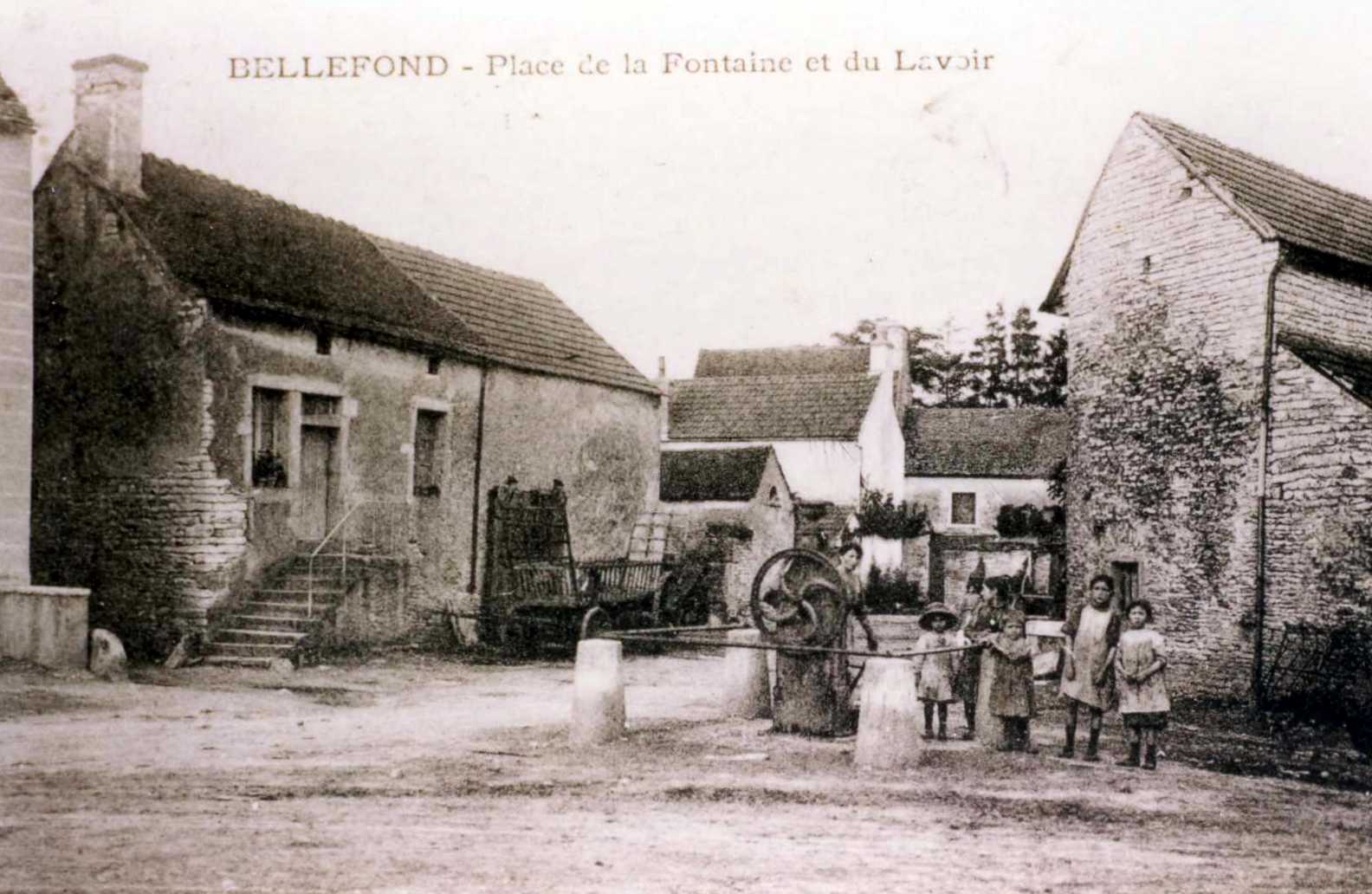 On produisait autrefois du vin à Bellefond et les mauvaises langues raillaient sa qualité. Au XVIIIe siècle, l’abbé Courtépée se moquait lui aussi de la production locale, disant que les vins de Bellefond étaient d’un médiocre rapport. Pourtant, le blanc des Dandelottes remporta en 1867, une grande médaille d’or à l’Exposition universelle de Paris. Autre rappel de la production locale dont on était fier, quelques vers laissés par le poète Maurice Nidreug : « C’est à Bellefond mon village, dans ce joli p’tit pays où l’on déguste le vin d’Barge, qui réveille et dégourdit. Aussi chantons à la ronde tous en chœur, ce refrain mes amis : c’est Belle’fond que nous préférons rougir not’trogne. En pleine Bourgogne c’est à Bellefond, à Bellefond près de Dijon ». Au sud-ouest du village, on trouve toujours le lieu-dit Pissevin. Quant aux vigneronnes portant des jupes un peu trop courtes pour se rendre dans les vignes, elles héritèrent du surnom de “Cul Rogné” ! Souvenir de cette époque, un pressoir se cache derrière la mairie.